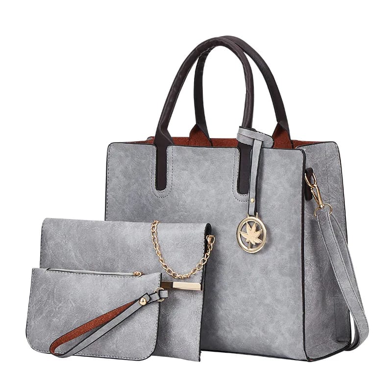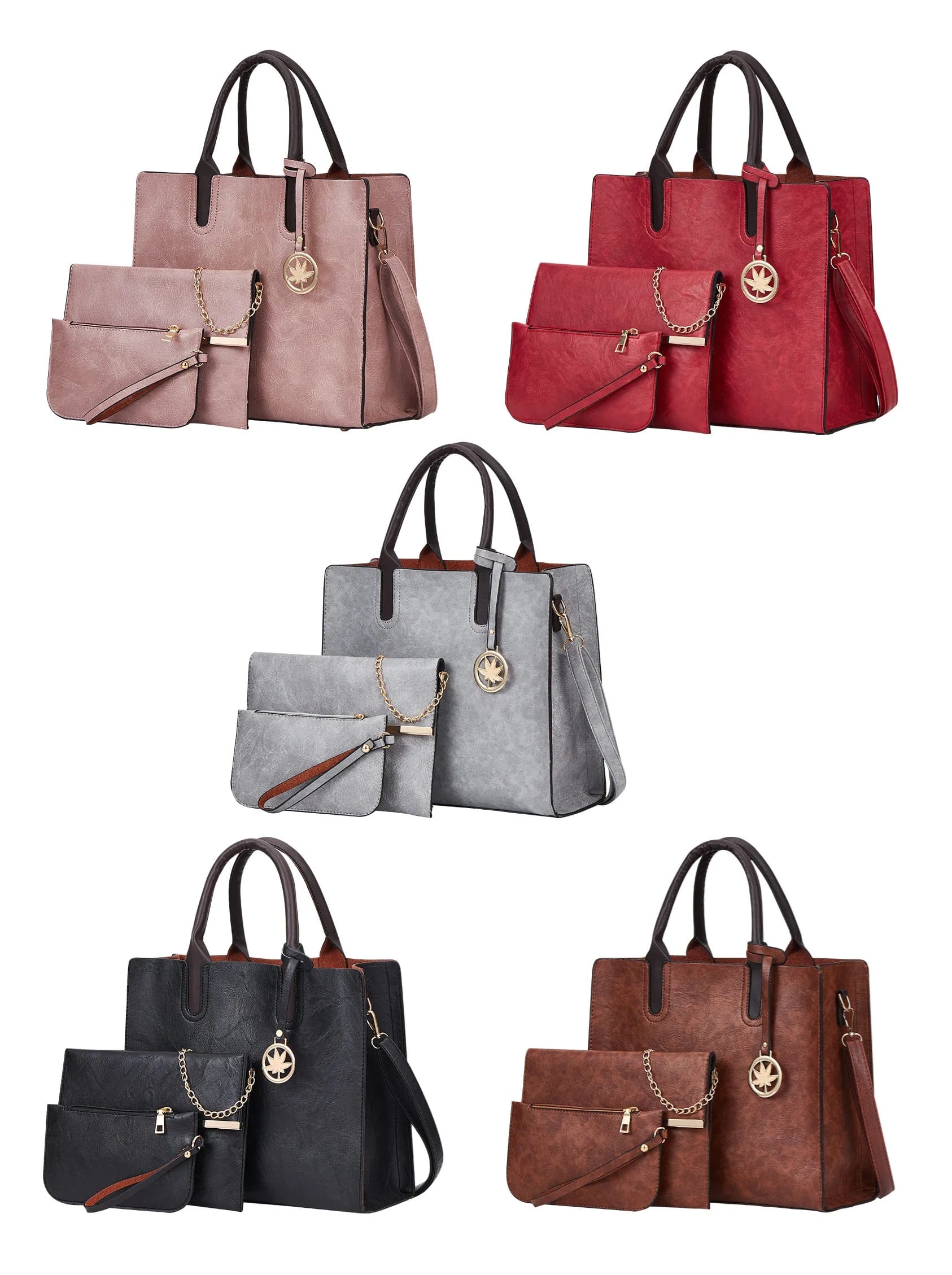 Ladies 3 in 1 Fashion Retro Pu Leather Tote Shoulder Bag Women’s Lychee Printed Casual PU Leather 3 Pcs Set Messenger Handbags